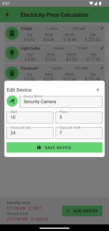 Hitung listrik yang dikonsumsi oleh perangkat listrik Anda dan harganya.