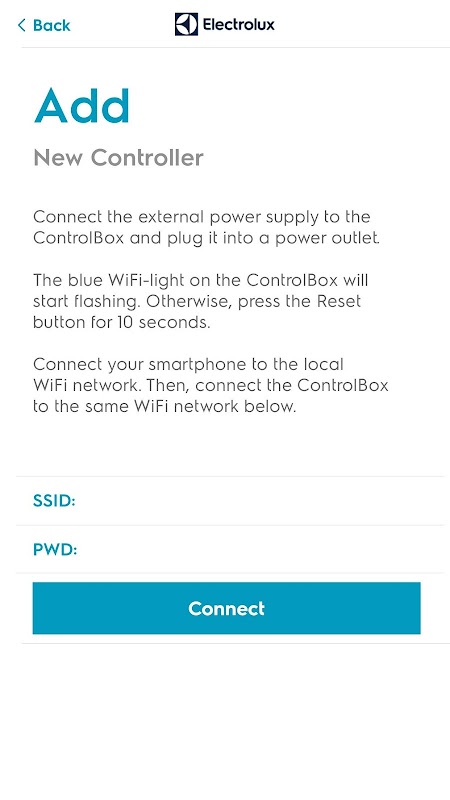 3. Download and launch the Electrolux Air Control application to setup the controller.