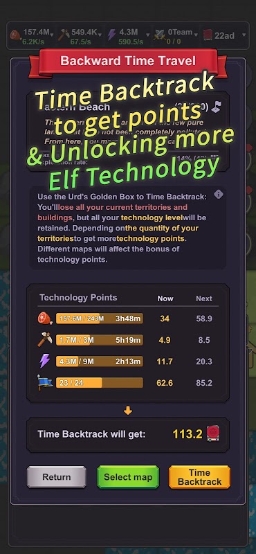 Melakukan perjalanan kembali ke masa lalu untuk mengumpulkan pengalaman dan pengetahuan, membuka dan meningkatkan berbagai teknologi peri, dan mendapatkan lebih banyak jenis bangunan dan unit.