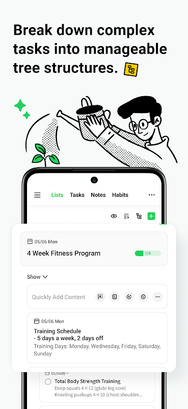 - Atur perencana harian Anda secara alami dengan struktur pohon inovatif kami.