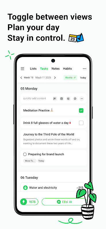 Bebaskan produktivitas puncak dengan Elisi, Perencana Cerdas & Pengelola Tugas AI Anda. Dapatkan pengaturan cerdas untuk tugas, daftar, catatan, kebiasaan, suasana hati, dan pengeluaran, semuanya didukung oleh AI canggih kami untuk menghadirkan kejelasan dan struktur pada kehidupan sehari-hari Anda yang sibuk.