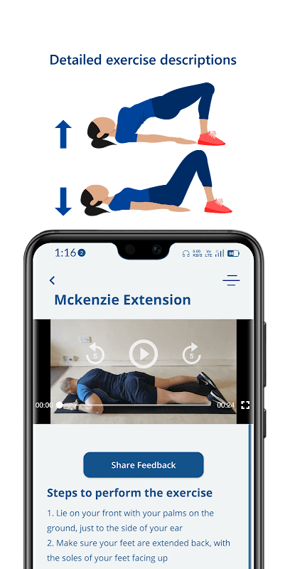 Pasien menerima bimbingan yang diperlukan untuk melakukan latihan dengan cara yang benar, pada waktu yang tepat dan pada tingkat yang benar sehingga memastikan hasil yang terukur. Dokter memiliki fasilitas untuk memanggil pasien jika ada masalah yang diketahui, dan kinerja latihan pasien dapat dinilai di dasbor dokter, termasuk persentase akurasi sehingga dokter dapat memberikan perawatan berbasis bukti.