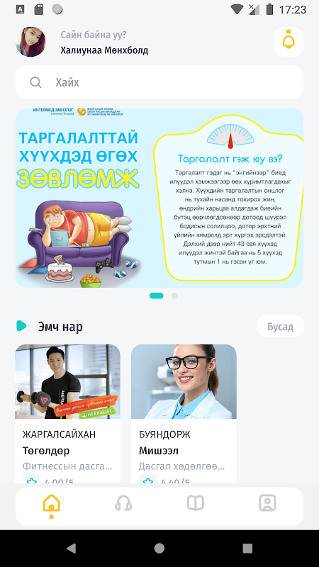 Dengan bantuan aplikasi Dokter, pengguna dapat terhubung dengan penasihat dan pelatih profesional pilihan mereka melalui obrolan dan panggilan video serta mendapatkan saran online tentang makan sehat, olahraga, dan gaya hidup sehat.