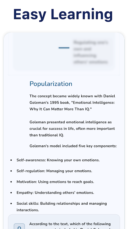 • Konten Terstruktur: Kuasai Kecerdasan Emosional langkah demi langkah, dari konsep dasar hingga keterampilan tingkat lanjut.