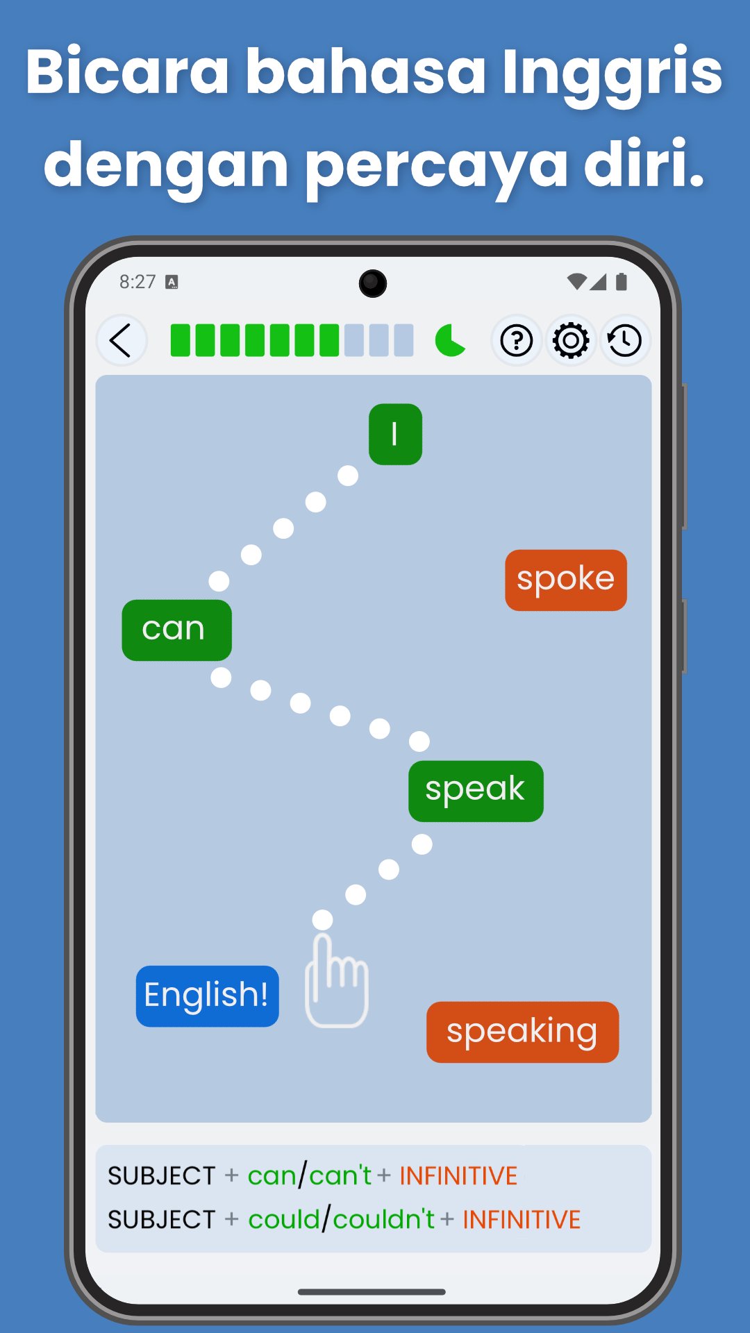 Pelajari tata bahasa Inggris dengan metode belajar yang menyenangkan! Mainkan permainan dengan pelajaran yang juga meningkatkan kosa kata, mendengarkan, dan kemampuan berbicara Anda.