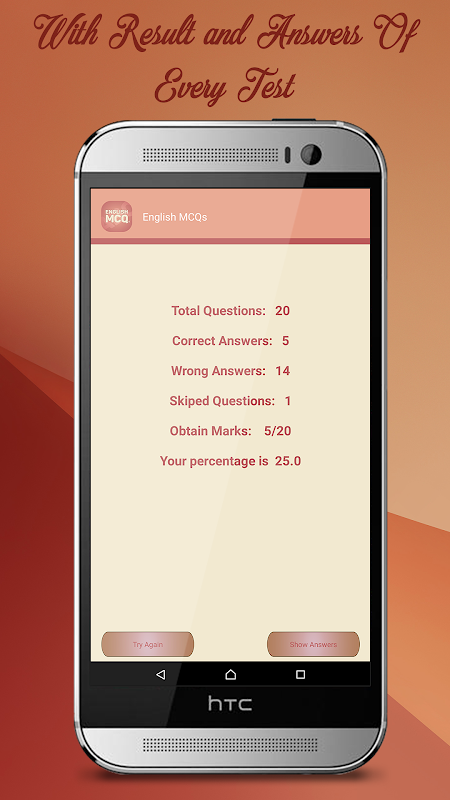 Mencobanya dan mencari tahu tentang persiapan Anda saat ini. Setelah Anda mengambil tes, hasilnya akan muncul dengan segala sesuatu seperti jumlah pertanyaan Anda upaya, pertanyaan yang benar, persentase dan tanda sesuai dengan format yang ETEA