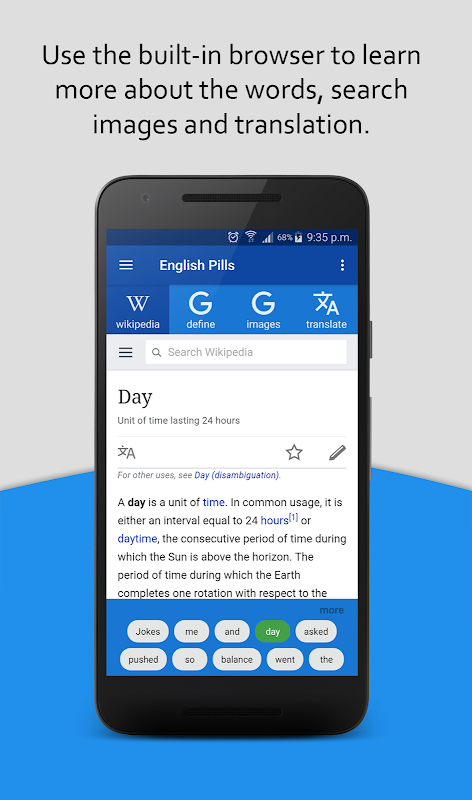 Masalah umum ketika Anda belajar bahasa adalah mengingat kata-kata yang Anda pelajari ketika Anda benar-benar membutuhkannya. English Pills menawarkan cara terbaik untuk mempelajari banyak kosakata dan informasi berguna yang tidak dapat Anda temukan di buku teks, menggunakan teknik yang disebut pengulangan spasi.