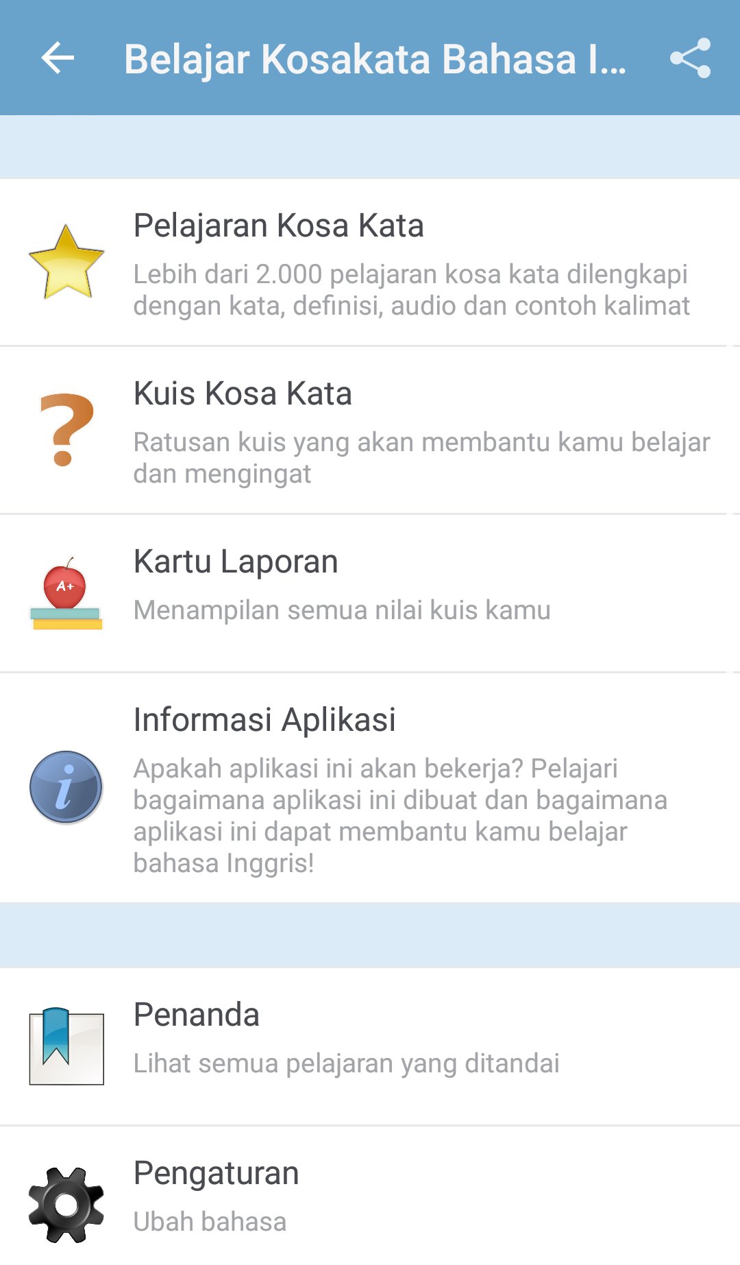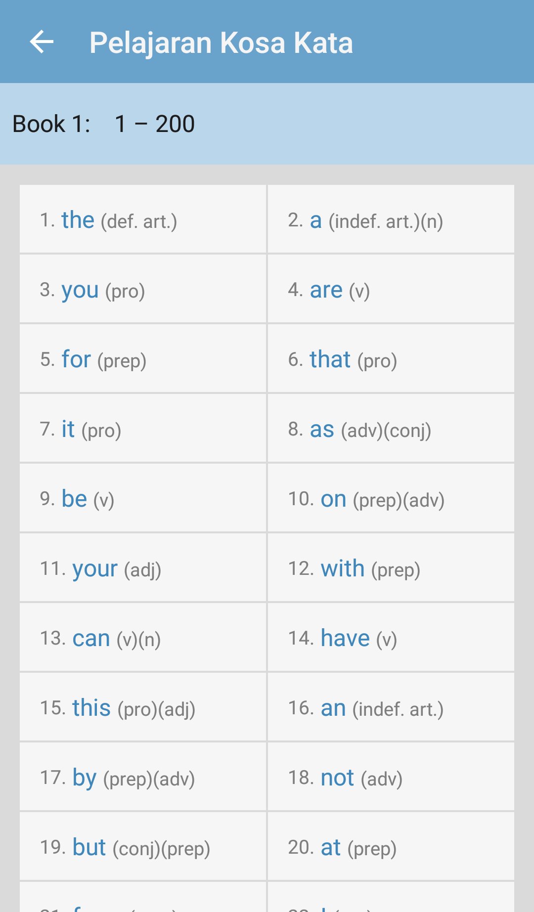Belajar Kosa Kata Inggris akan membantu kamu mempelajari 2000 kosa kata terpilih dalam bahasa Inggris.