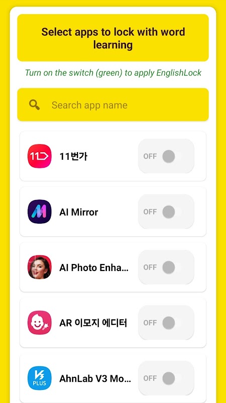 2. Learn an English word before opening selected apps