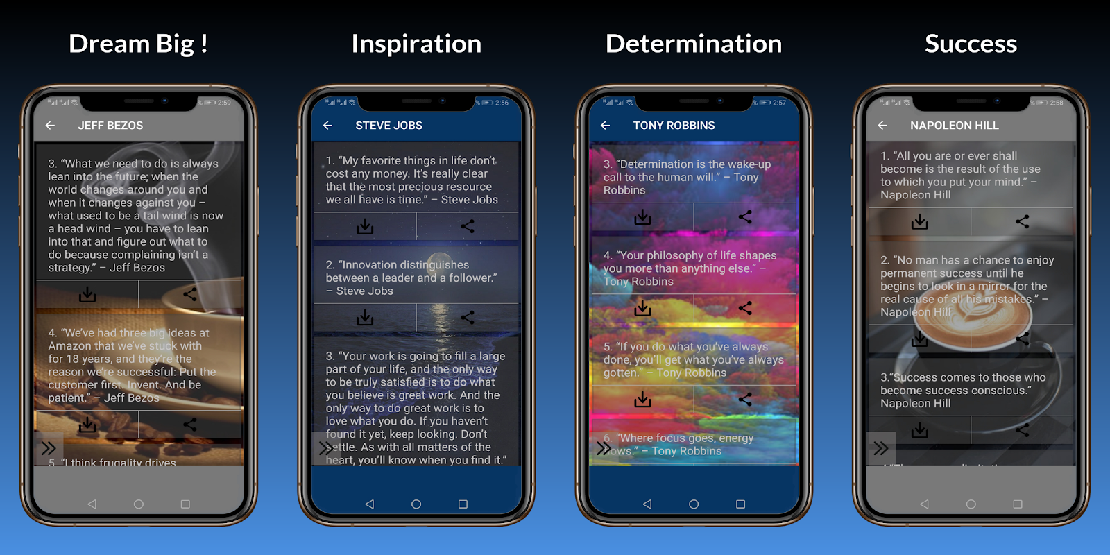 Di Aplikasi ini kami mengumpulkan kisah sukses dan Kutipan terbaik dari semua orang Great Minds yang mengubah dunia dengan tindakan mereka.