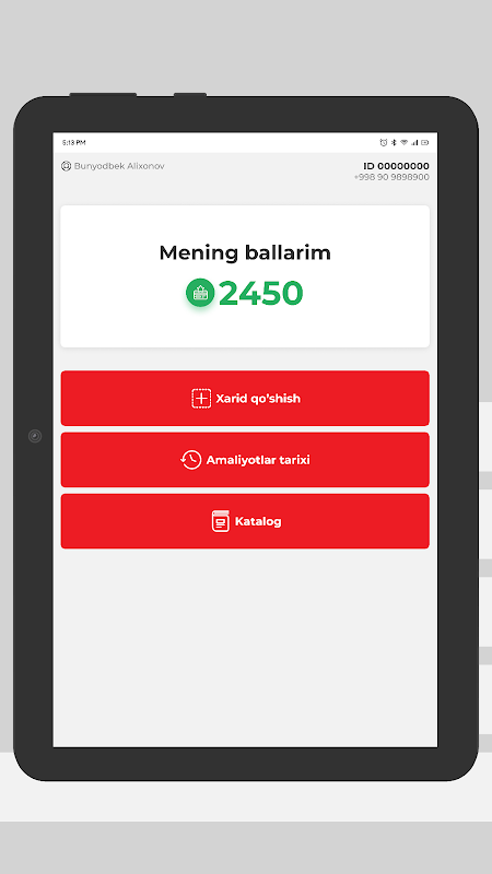 - Mahsulotlar katalogini ko'rish va boshqa imkoniyatlar. Katalogda har bir mahsulotning bonus balldagi qiymati ko'satilgan.