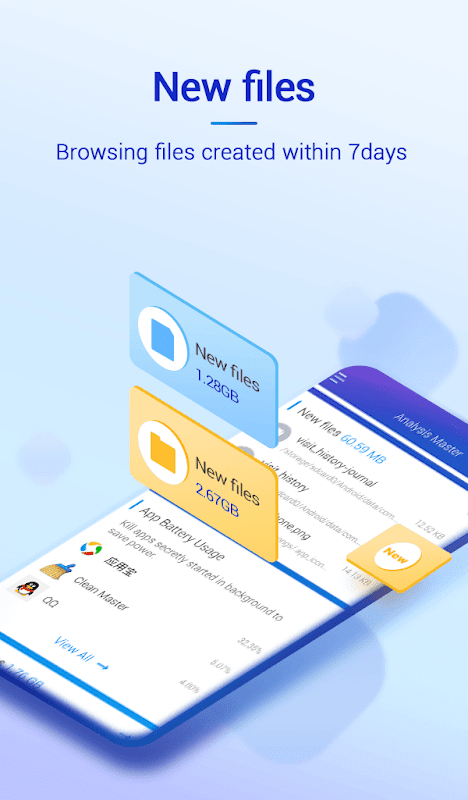 One tap to free up disk space and clean file trash by finding out temporary files, log files, and empty folder