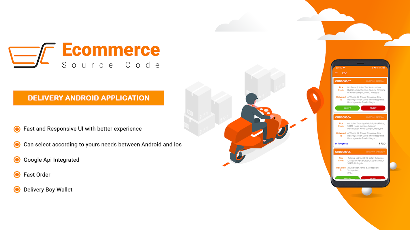E-commerce Source code delivery boy application memiliki fitur terbaik - ketika delivery boy place order langsung menerima notifikasi on order - berarti secara otomatis menetapkan delivery boy. Dalam satu vendor - delivery boy langsung pergi ke gudang dan mengambil item pesanan dan pergi untuk pengiriman dan dalam pengiriman multivendor pergi ke vendor dan mengambil item pesanan dan pergi untuk pengiriman.