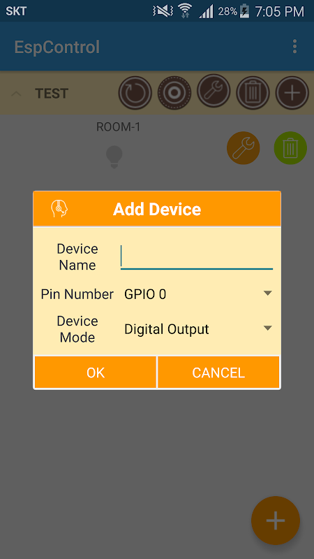 이 앱을 사용하기 위해서는 esp8266 모듈에 espcontrol 블로그에서 제공하는 프로그램을 업로드 하여야 합니다.
