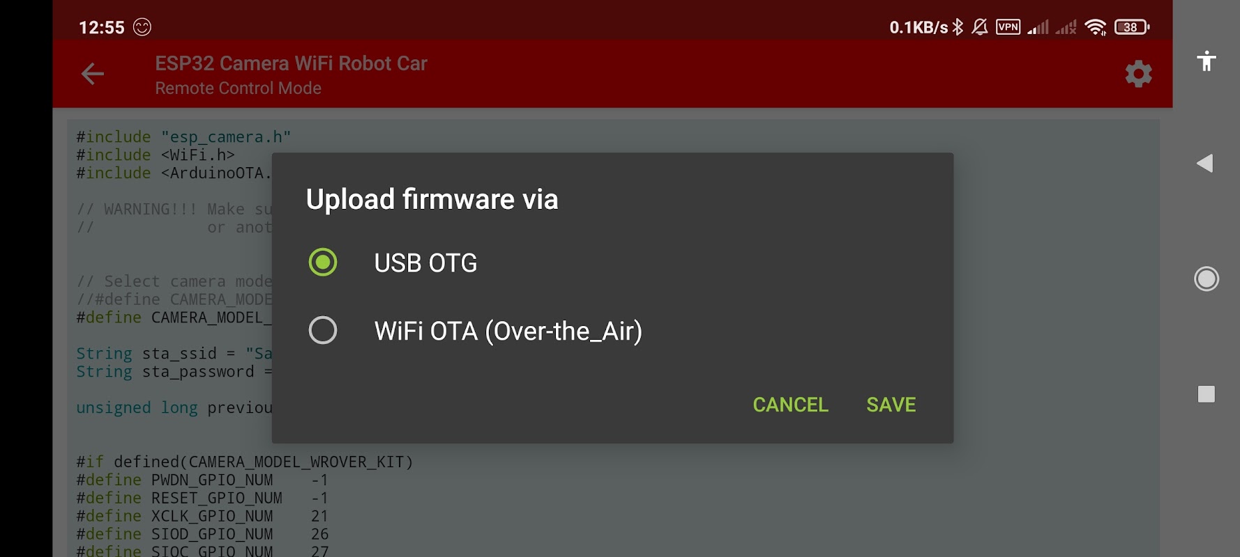 Aplikasi ini dirancang untuk memudahkan Anda membangun mobil robot Wifi dasar dengan streaming video langsung (tampilan kamera). Aplikasi ini memungkinkan Anda untuk mengontrol mobil robot berbasis ESP32-Cam melalui Wifi (mode AP / STA), dan juga Anda dapat mengunggah sketsa / kode langsung dari ponsel Android Anda ke ESP32-Cam melalui USB OTG (gunakan modul USB ke TTL) atau Wifi OTA (Over-theAir).