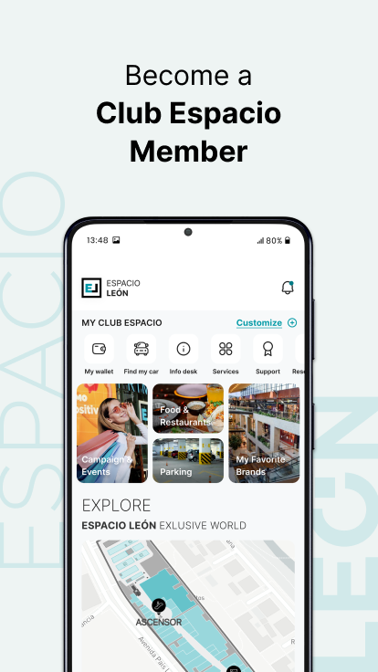 Promosi, merek favorit, makanan enak, dan parkir. Yang terbaik dari Espacio Leon, dalam satu aplikasi.