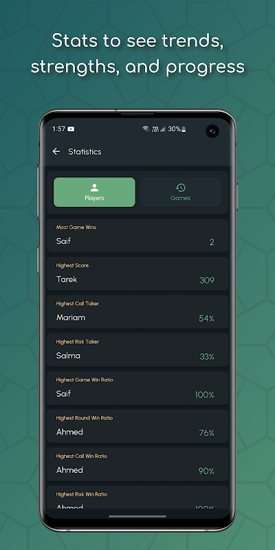 Statistik Terperinci & Wawasan Game 📊: Dapatkan wawasan tentang kinerja setiap pemain dari waktu ke waktu dan lihat setiap pertandingan dan putaran secara detail.