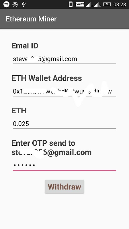 Ethereum Miner is an android application which connects with the mining server to generate ETH.