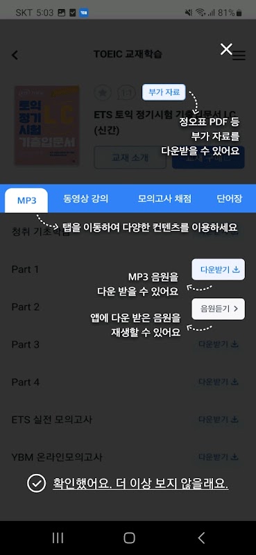 Platform pembelajaran seluler khusus untuk buku ujian ETS TOEIC L&R S&W yang dibuat oleh penyelenggara TOEIC & penerbit eksklusif pertanyaan sebelumnya, YBM!
