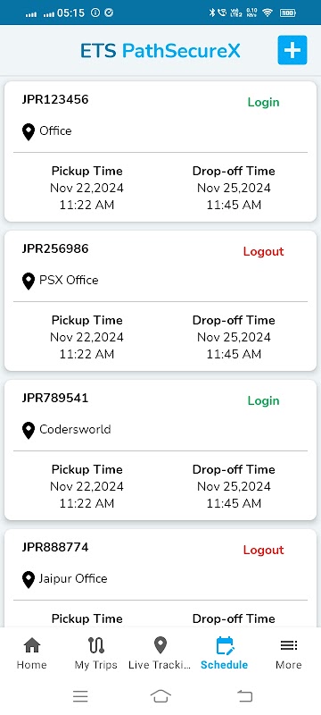 ETS PathsecureX is an application to manage your daily office commute. Employees can create/modify/cancel rosters, track their vehicles, contact drivers and the helpdesk, raise SOS alarm through the app.