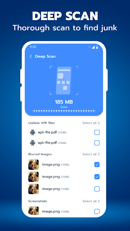 Pemindaian Mendalam: Mendeteksi tangkapan layar, folder kosong, dan file APK yang tidak berguna.