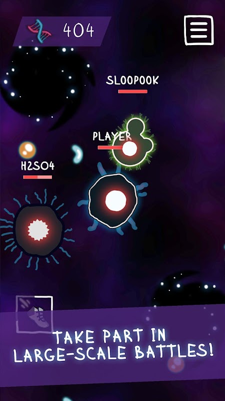 The tactics available for players vary tremendously! Depending on the monster’s evolution stage it can become a tiny weak but very fast spore or, in contrast become a furious, mighty and dangerous monster easily devouring other inhabitants of this tiny universe, showing its power in clashes. It is completely you decision on which skins and parameters to spend the DNA collected in the battles and which evolution path to choose. Choose and evolve wisely!