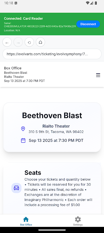 Aplikasi pendamping bagi pengguna EvolvArts untuk menjalankan Box Office dengan Pembaca Kartu