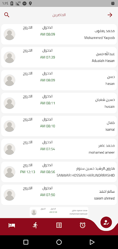 1 - تسجيل خروج ودخول بصمه الموظفين