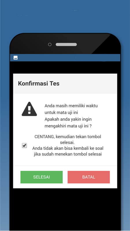 - ANTI CURANG : Aplikasi ini meminimalisir kecurangan peserta ujian seperti membuka catatan dalam file atau galeri dan tidak dapat di minimize.