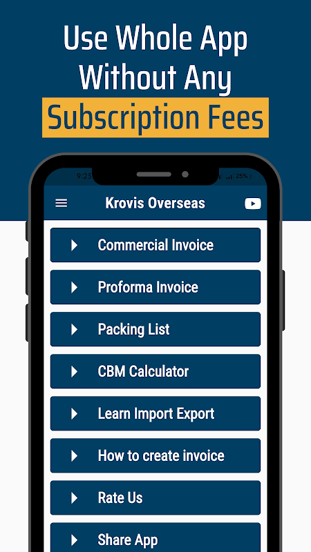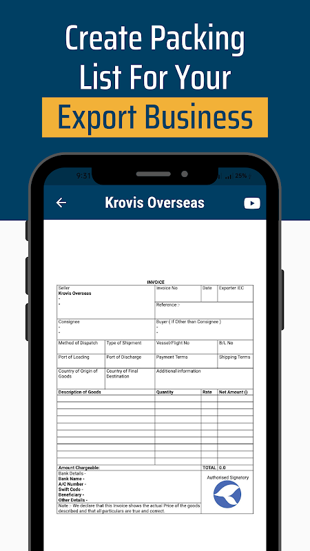Aplikasi ini dirancang untuk membuat bisnis ekspor impor Anda lebih produktif. Anda dapat membuat faktur ekspor dan daftar pengepakan gratis tanpa batas. Hasilkan faktur ekspor tanpa batas tanpa biaya berlangganan apa pun. Aplikasi ini menyediakan solusi lengkap untuk bisnis ekspor impor.