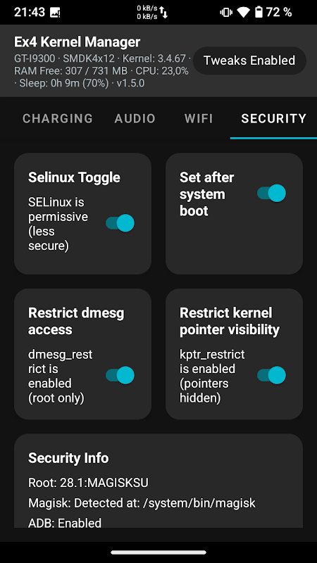 Aplikasi ini dapat digunakan untuk melakukan beberapa tweak kernel, membatasi/meningkatkan fungsi perangkat Anda dan juga dapat membantu untuk tujuan debugging.