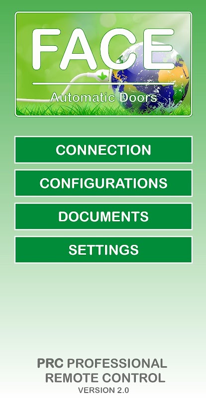 Aplikasi smartphone FACE PRC dikembangkan untuk pemasang / pemelihara pintu otomatis dan memungkinkan untuk melakukan operasi berikut.