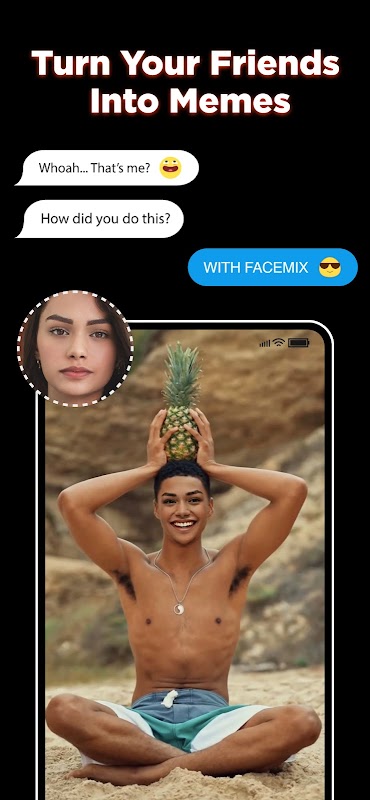 Facemix menambahkan wajah Anda sangat pas dalam video yang dipilih, membuat ekspresi wajah yang realistis. Anda akan terkejut dengan hasilnya.