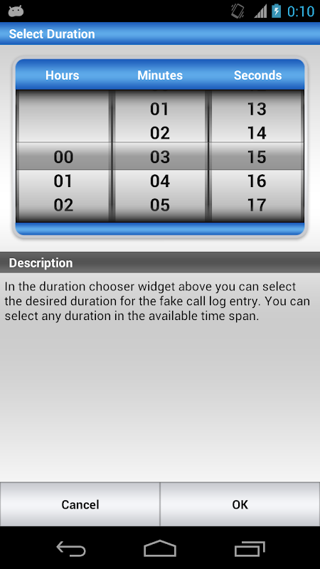 2. Choose the date time and duration of the fake call log entry