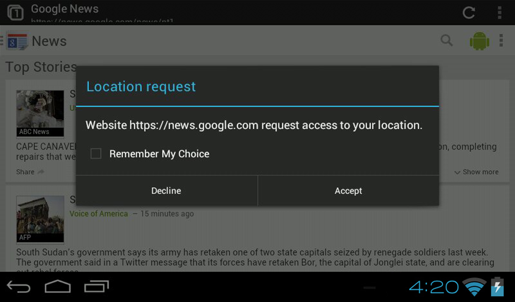 - Website atau jasa meminta lokasi atau personal data harus diverifikasi, pilihan untuk Terima atau Tolak!