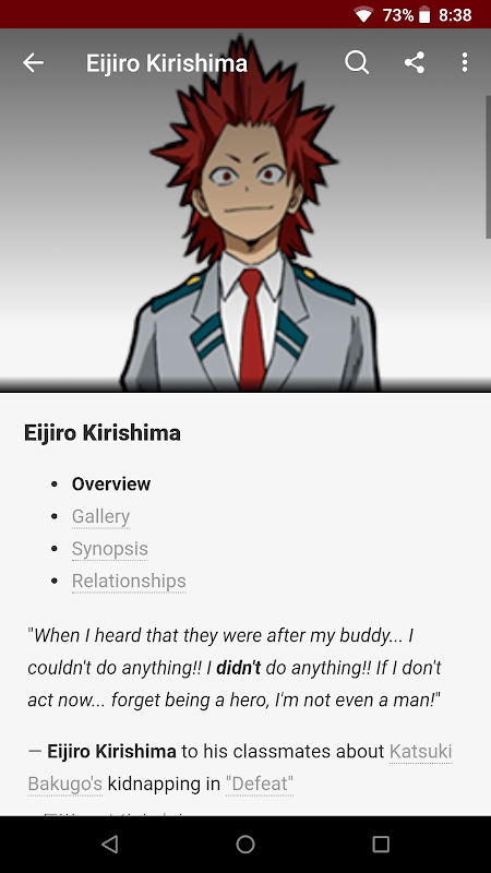 Fandom's app for Boku no Hero Academia - created by fans, for fans. Fandom apps are always up-to-date with highly accurate, real-time information from Fandom’s vast fan community. The Boku no Hero Academia app features hundreds of pages of content created by fans just like you. Find in-depth articles on characters, manga, and all of the popular culture references that Boku no Hero Academia is known for, and much more. No other app offers this amount of accurate insights, tips and information with useful companion features such as: