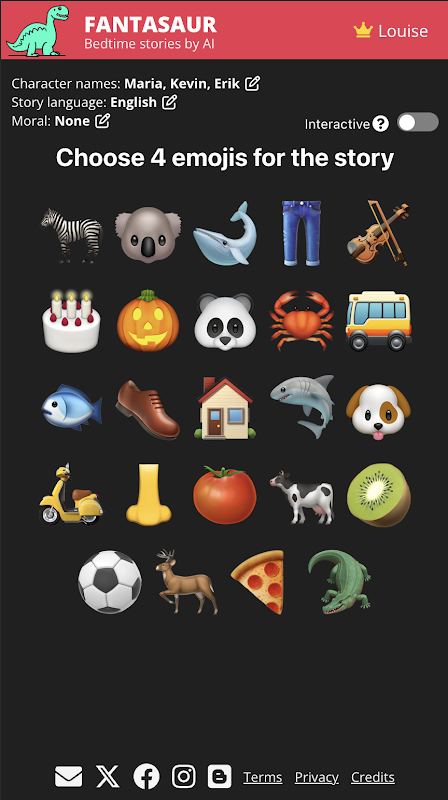 Ubah waktu tidur menjadi petualangan yang dipersonalisasi. Pilih 4 emoji dan pesan moral untuk cerita tersebut, beri nama pada karakternya, dan biarkan AI kami yang kuat membuat cerita unik dengan gambar yang menarik - semuanya dalam hitungan detik dan dalam 18 bahasa! Baik membaca atau mendengarkan, waktu tidur anak Anda akan dipenuhi dengan keajaiban. Aktifkan mode interaktif untuk lebih bersenang-senang, memungkinkan Anda membentuk cerita seiring perkembangannya.