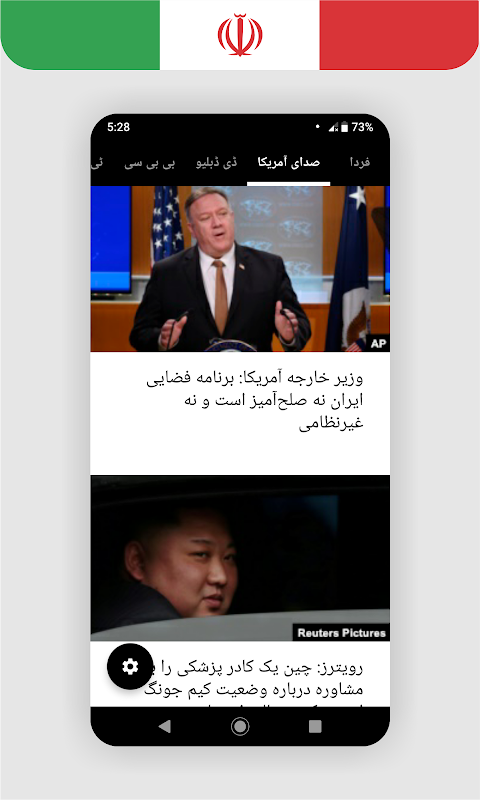 Berita Persia / Farsi Akhbar اخبار فارسی menyediakan berita Persia / Farsi terbaru dari seluruh dunia. Anda dapat membaca berita dari semua saluran berita dan surat kabar Persia / Farsi yang terkenal. Aplikasi berita Persia / Farsi menyediakan berita terbaru dan terkini Anda di seluruh dunia termasuk: