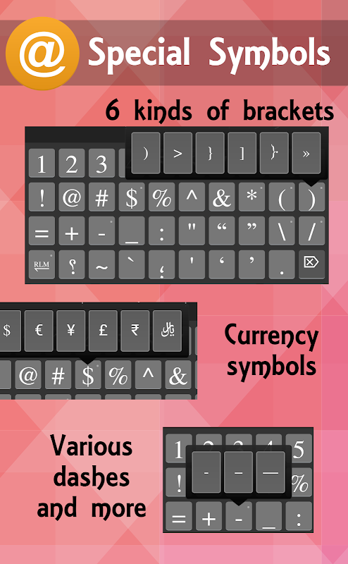🧭 Beragam karakter khusus tersedia di layar simbol, termasuk penanda kanan ke kiri dan kiri ke kanan, yang memastikan bahwa karakter lain muncul tepat di tempat yang Anda inginkan.