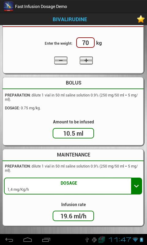 N.B. The Demo version is preparatory for using Fast Infusion Dosage that implements all emergency drugs.