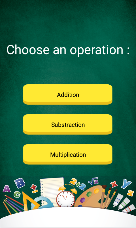 You will be given an elementary and easy math drills, test your mind, skill and speed in the fight with time.