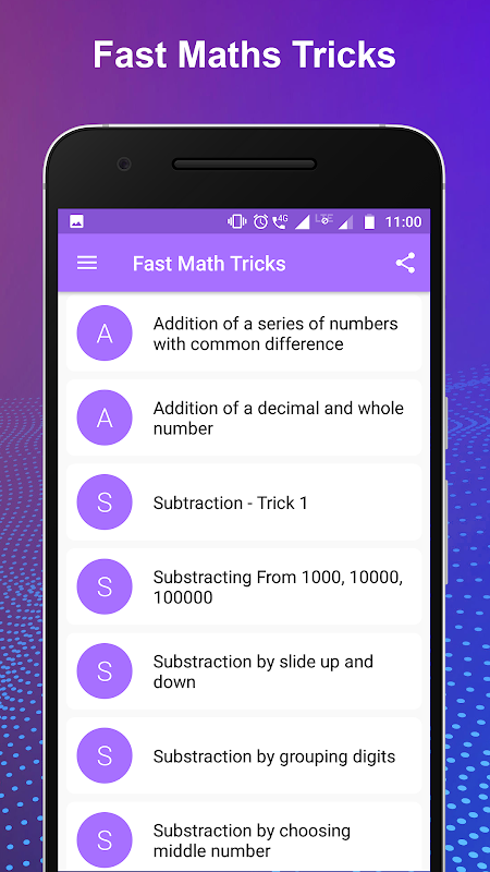 Techniques in this app simplify multiplication, divisibility, complex numbers, squaring, cubing, square and cube roots.