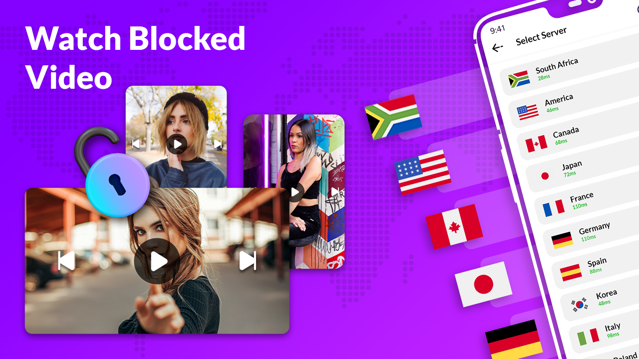 Buka blokir situs web dengan server proxy VPN gratis. Itu juga dapat membuka blokir video yang tidak tersedia di negara Anda.