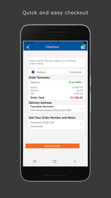 Tempatkan pesanan Anda, lalu klik dan kirim (pesanan sebagian juga dapat disimpan di cloud untuk diselesaikan di kemudian hari, di perangkat apa pun yang kompatibel)