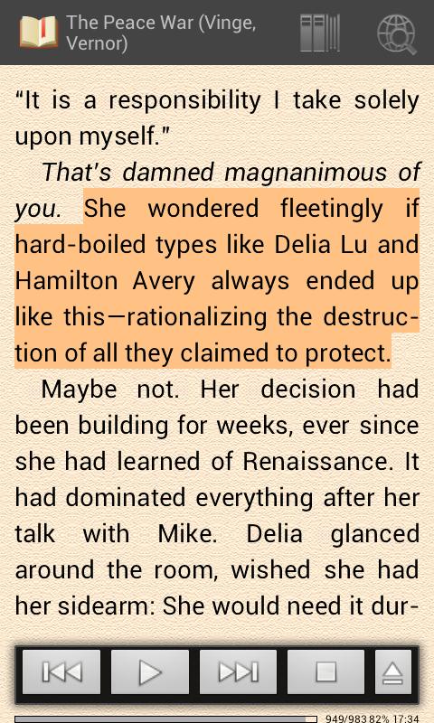 * Can highlight individual sentences instead of full paragraphs, but this requires a small code change in the main FBReader code.