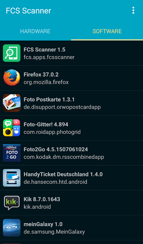 Aplikasi ini (tersedia dalam bahasa Jerman dan Inggris) scan smartphone atau tablet dan pasokan Anda dengan hardware dan software informasi rinci: