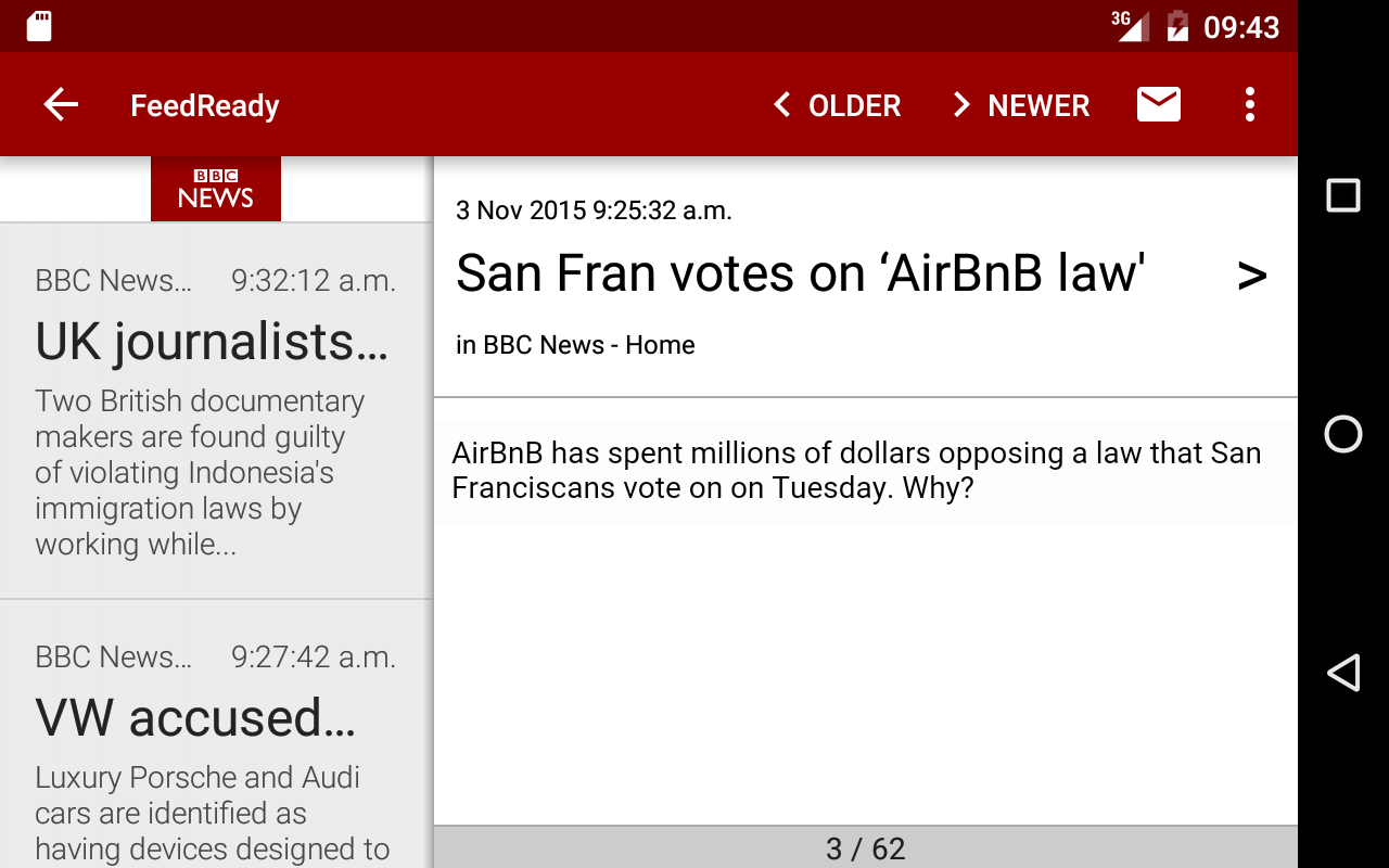 FeedReady allows you to read articles quickly and effectively. It will collect news from your selected sources and show them into one easy to read list.