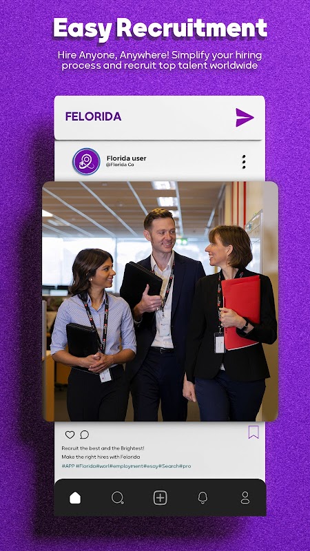 Felorida adalah aplikasi media sosial yang dibuat tidak hanya untuk kesenangan dan hiburan tetapi juga untuk mencari pekerjaan, menjual produk baru atau bekas dan menyediakan layanan di seluruh dunia.