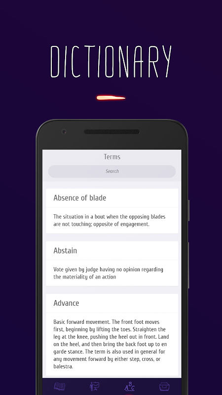 "Fencing" is your personal helper that provides you with all information required. Can you just imagine that with the help of one app you can easily learn fencing reviewing the fencing rules provided, observing visual explanations and watching video lessons?
