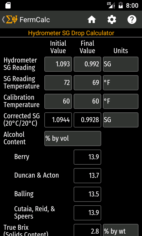 FermCalc adalah kumpulan dari kalkulator Anggur canggih yang dirancang untuk membantu baik pembuat anggur amatir dan profesional dengan perhitungan yang berkaitan dengan kegiatan sebagai berikut: